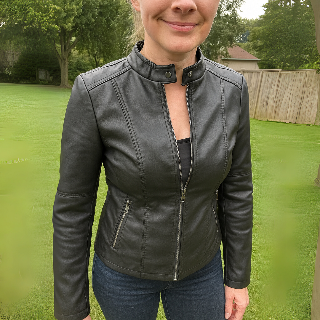 Veste en cuir très stylée, bien coupée et confortable. Elle donne un look moderne et se porte facilement au quotidien.